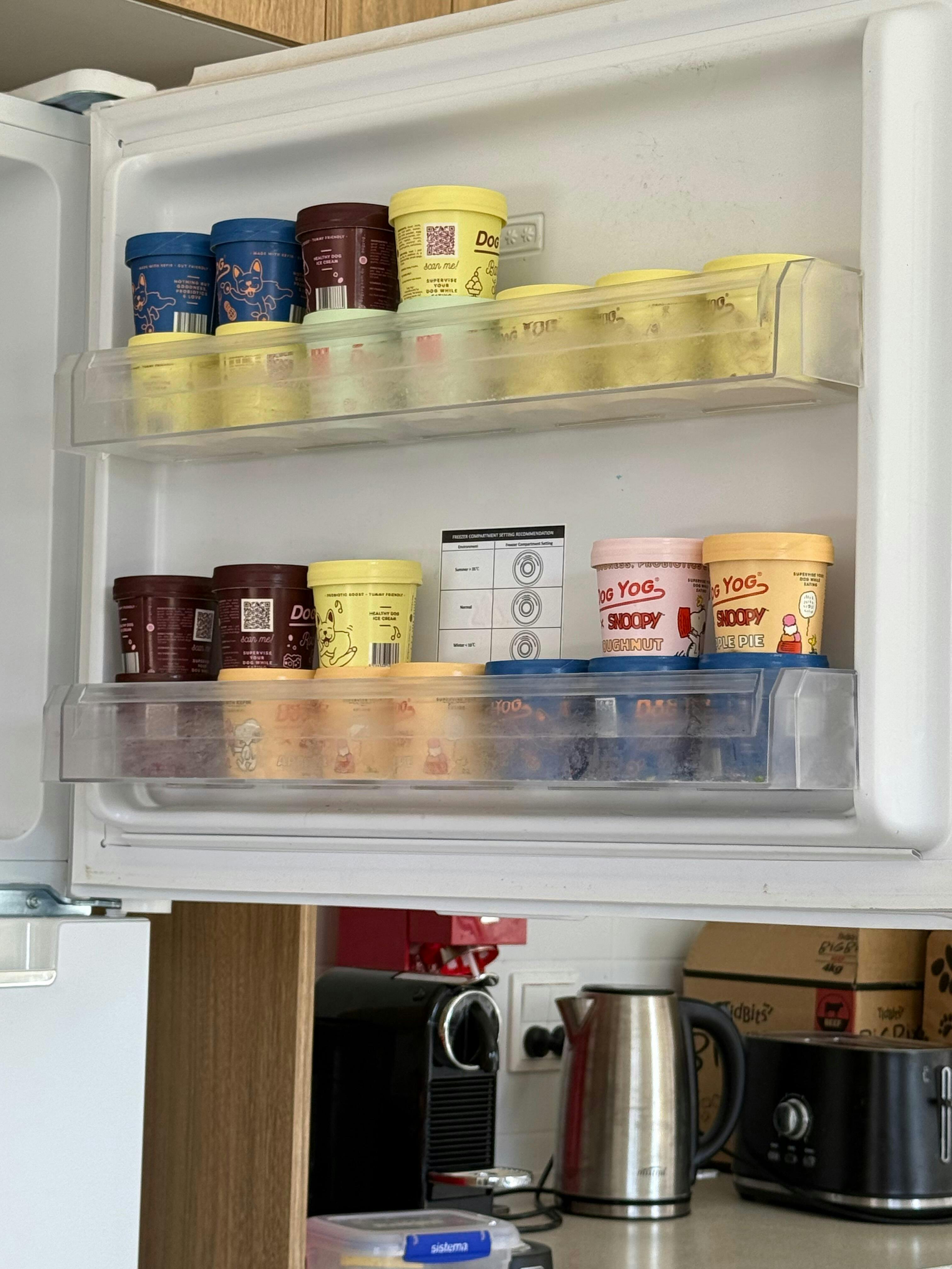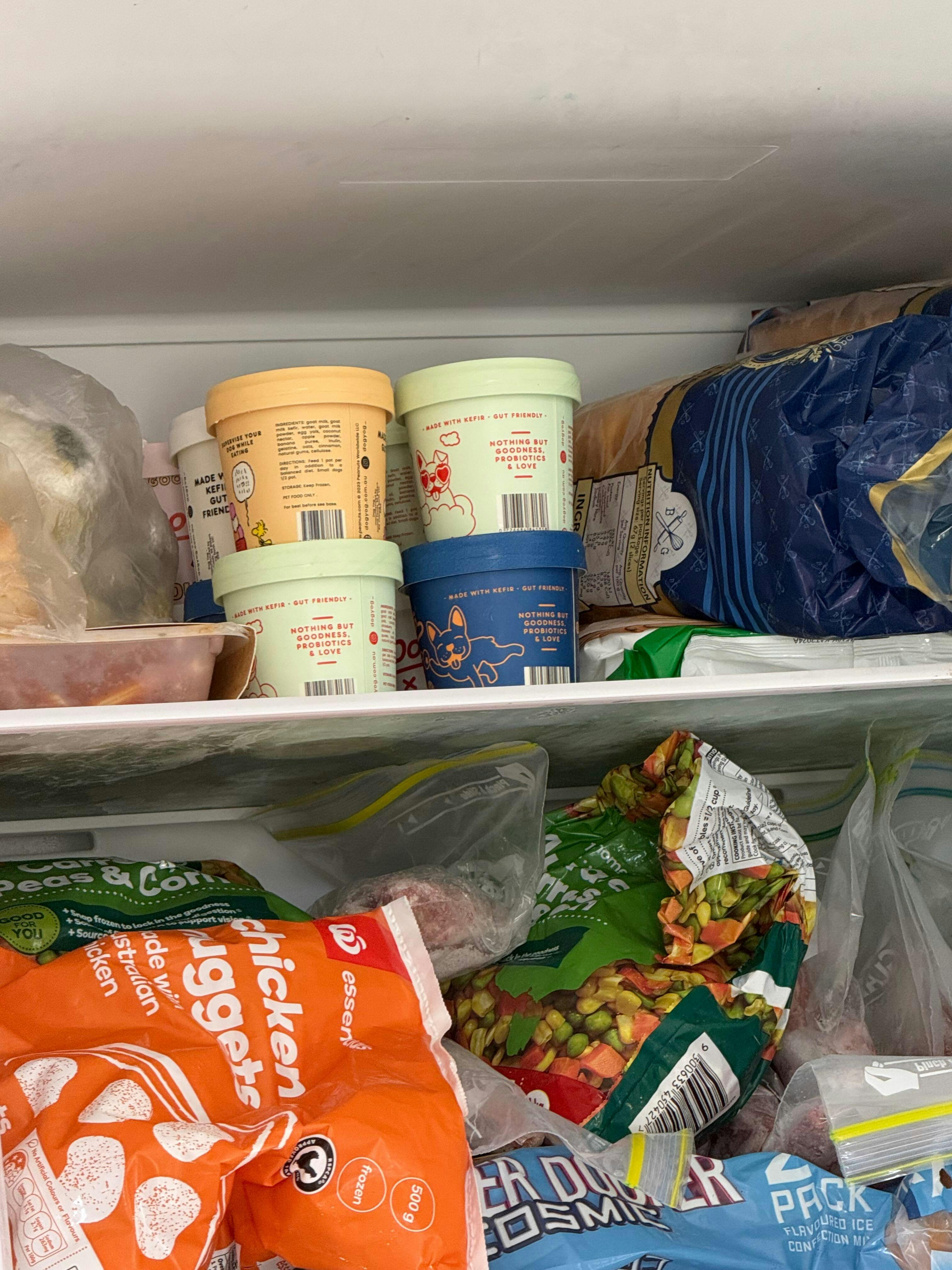 The Taster Bundle Six scoops. Zero pressure to choose. Our Taster Bundle is the perfect intro to Dog Yog — a selection of six of our signature dog ice creams made with gentle goat milk, natural probiotics, and gut-loving ingredients for your dog. Easy on tummies, calming by nature, and just the right amount of indulgent. Great for the curious, the picky, or anyone who just wants to try the lot. Flavours may vary slightly depending on what’s fresh from the freezer. What’s inside Blueberry & Peanut Butter (The OG) Rocky Road (The Heartbreaker) Strawberry Dreams (The Daydreamer) Banana Split (The Zoomie) Apple Pie Birthday Cake Donut